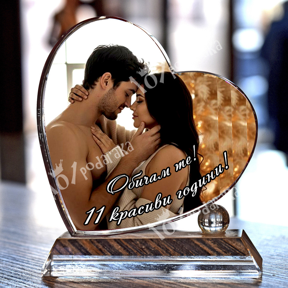 Стъклен кристал с форма сърце е прекрасен подарък за всеки повод. Можете да изненадате любим човек с незабравим запечатан момент от снимка върху кристал. Сантиментален и уникален подарък, изработен по ваш дизайн. Кристал сърце със снимка е луксозен и изискан подарък които би стоял идеално на вашето бюро, секция или лавица.