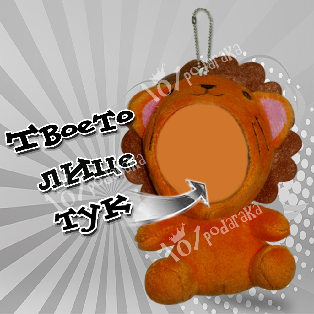Предлагаме ви плюшена играчка, която може да бъде изработена с вашето лице. Плоюшена играчка лъвче е специално създадена, за да може да се персонализира с различни лица. Освен това образът е от висококачесвена PVC хартия, която е с 3D извивки. Всяко лице има изпъкнал нос и леки вдлъбнатини около зоната на очите. Цялото лице наподобява човешки образ, защото е извито и изпъкнало. Поставено върху играчката, придава абсолютна завършеност и тя оживява със съваршенната идентичност на човешко лице.